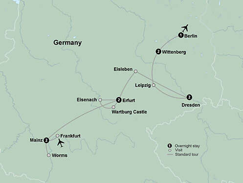 Join us as we follow in the footsteps of Martin Luther. Begin in Mainz, home to the Gutenberg Musuem and famous printed bible. Come to know Worms, and the very spot where Martin Luther refused to recant before the Imperial Diet on a guided walking tour. Visit Wartburg castle, Luther’s sanctuary after being “outlawed.” Here he spent his time translating the Bible into German. Enjoy a musical performance played on medieval instruments inside the home of Johann Sebastian Bach. Discover Leipzig’s St. Thomas Cathedral. Visit Eiselben where Luther was born and died and explore the museum inside the home he was born in. Tour the Augustinian Monastery where Luther studied, and enjoy a prayer service. Travel to Wittenberg to visit the grounds of Wittenberg University with its Luther house, the city church where Luther offered services, and the Castle Church where he set off the reformation by nailing his Ninety-Five Theses to the church door. Have services in one of the medieval churches from Luther’s time. Overnight in the lovely old town of Dresden along the banks of the river Elbe. Enjoy unique dinners, including cellar dinner and a brewery tour, where you sample beers before a typical German meal. This epic journey takes you across Germany and deep into the history of Lutheranism.