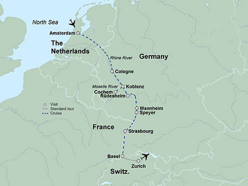 Set sail on a cruise along the Rhine and Moselle rivers that will take you to Netherlands, Germany and France. Sit back and relax in your outside stateroom, and enjoy the luxury of unlimited wine or beer with every dinner and daily onboard musical performances. Join a local expert for a tour Amsterdam highlighting the city’s centuries-old canal system and famous 16th-century row houses stacked side-by-side. This cruise will bring you by charming panoramas while you get to know the interesting culture and deep history of the region. Spend time in Speyer, one of Germany’s oldest cities. Pause in Rüdesheim, to explore the famous Siegfried’s Mechaniches Musikkabinett (or Music Museum). Tour the 2,000-year-old city of Koblenz. Your stop in Cologne features a guided walking tour of the city’s old town and Cologne Cathedral. Spend the afternoon in Bernkasel and sip wine in one of the famous cellars. Enjoy a guided tour of the world famous Strasbourg old town.